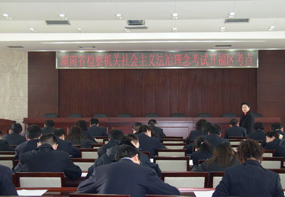 为巩固社会主义法治理念教育活动的成果,1月26日下午,湖南省检察机关组织了社会主义法治理念考试,图为长沙市开福区人民检察院全体干警正在聚精会神地参加考试。