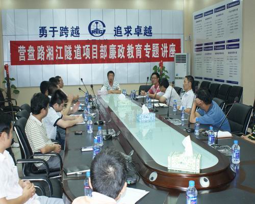 营盘路隧道工程是长沙市的重点工程,整个工程造价11.4亿余元,工期为两年。该工程已于去年9月20日开工,现在工程过半。这次听课的40余人均为该工程的各层管理人员。