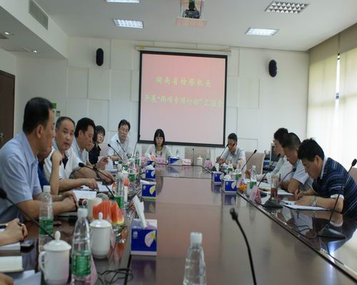 在调研座谈会上,刘处长先后听取了到我院、长沙市院、湖南省院关于开展“两个专项行动”的工作汇报后,对我省、市、区三级检察机关专项工作开展所取得的成效给予了充分肯定,认为我省的“两个专项”活动领导高度重视、开局良好、后劲很大。同时刘处长从进一步提高认识;突出工作重点,形成打击声势;严肃查办与侵犯知识产权和销售假冒伪劣商品相关的职务犯罪;建立长效机制等四个方面提出了更高的要求。市委常委元明同志也就开展“两个专项”活动工作提出了建议。一是“两个专项行动”工作要突出工作重点,形成打击声威。党政组织要进一步对提高“两个专项行动”的认识,加大宣传力度,积极争取群众的支持,将工作融入到经济社会建设的大局中去。二是把握好形势政策,积极作为,充分发挥检察职能。三是加大监督,创新社会管理措施,推进依法行政。四是“长短结合”,通过“两个专项行动”这一抓手,形成“两法衔接”长效机制。五是司法机关要与行政执法机关加大与各部门的配合协调力度,形成打击合力,强化批捕、起诉和诉讼监督职能。