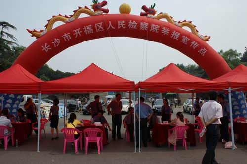 622上午,顶着炎炎烈日,我院按照省、市院的统一部署在烈士公园南门设点,进行举报宣传活动。该次活动由检察长丁晓波、纪检组长曾广军带队,各业务科室骨干一同参与,共接待法律咨询人员25人,直接解答问题8个,发放宣传资料65份。